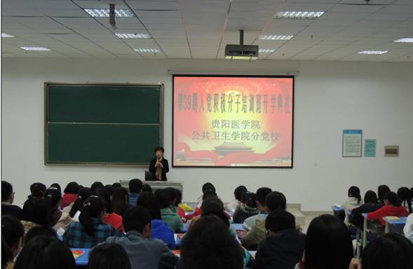 来自2012级预防医学的甘兴文同学代表全体学员发言,承诺在学习中遵守纪律,认真做好笔记,积极发言,思想上和行动上追求进步,以优异的成绩向党组织交上一份满意的答卷,争取早日加入中国共产党。