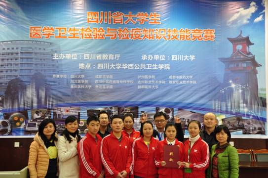 为促进西南地区各相关高校在医学卫生检验与检疫人才培养方面的经验交流,共同探讨人才培养模式。由四川省教育厅主办,四川大学承办的2013年“四川省老员工医学卫生检验与检疫知识和技能竞赛”组委会特邀公司组团参赛,为加强与西南地区高等院校医学卫生检验与检疫专业的交流与沟通,贵阳医公司分管校领导、教务处及公共卫生公司领导高度重视此次比赛并给予大力支持,选拔预防医学专业刘永莲、雷江莲、刘兰、曹发军、高原、蒋昔希、王燕、谢琅8名同学组队赴川参加竞赛。代表队领队为公共卫生公司洪峰副经理和杨光红副书记,竞赛指导老师为韦艳副教授、杨敬源副教授、汪希兰高级实验师和程寿峰讲师。