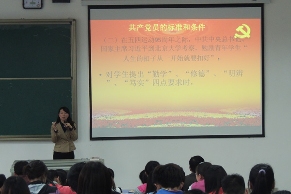 张红霞围绕“共产党员的标准和条件”进行理论授课。她用图文并茂的PPT,向同学们深入浅出地讲解了加入中国共产党必须具备的客观条件、主观条件、基本条件及基本标准,并以优秀共产党员和身边优秀青年的先进事迹鼓励同学们,希望同学们增强责任感和使命感,坚定入党信念和斗志,不断向党组织靠拢,为成为一名优秀的共产党员、为社会主义现代化建设不懈奋斗。