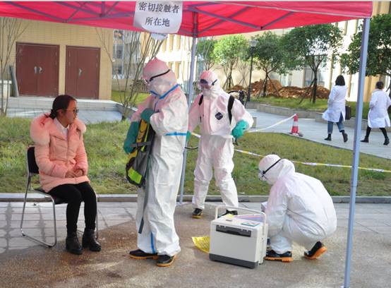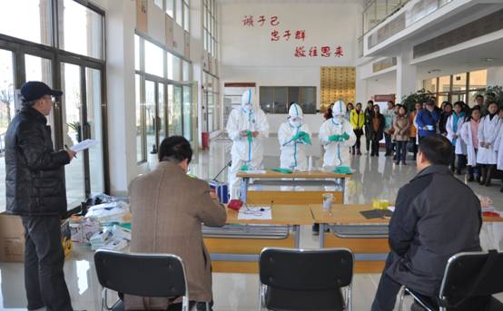 本次竞赛以“传染病疫情”为背景模拟突发公共卫生事件应急处置现场,进入决赛的8支代表队按抽签顺序依次进入演示现场,根据模拟场景分别完成疫情报告→集结区选择所用防护服、消毒药械、采样器具、工作用表等所需用品→队员穿戴个人防护用品→首次消毒(对路径及环境和物品进行消毒)→现场流行病学调查及个案调查→采集样品→转运病人→终末消毒→队员脱个人防护用品→现场清理→口头总结汇报等流程。专家评委对各代表队进行逐项评分并就相关问题进行提问。