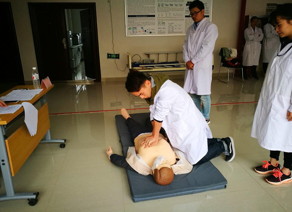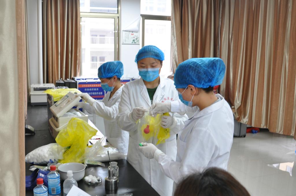 此次竞赛,得到了公司领导的高度重视和大力支持,也得到广大教师和员工的积极响应,共有23支代表队报名参赛,其中教工队8支,员工队15支。本次竞赛主要围绕临床基本操作技能和公共卫生基本技能进行,共分为五站,分别为心肺复苏、穿脱防护服、样品采样、现场检测、卫生处理。评委专家对各代表队进行逐项评分并就相关问题进行提问。