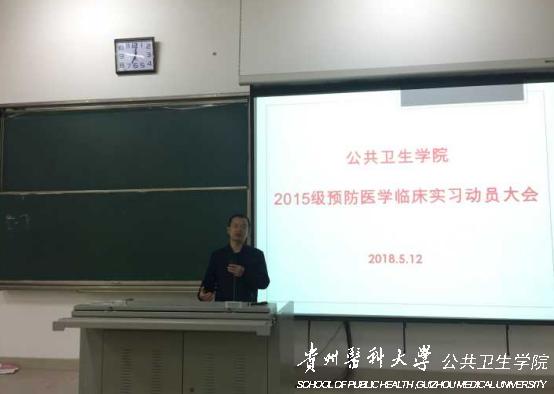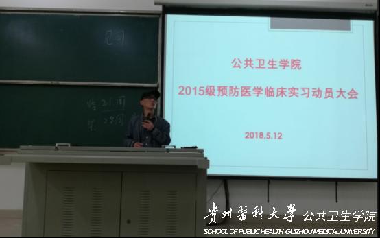 5月12日上午,公共卫生公司在北校区4101教室召开了“2015级预防医学专业临床实习动员大会”,会议由公共卫生公司员工管理科科长刘亮主持,公共卫生公司党委副书记何江参会,2015级预防医学专业111名同学参加。