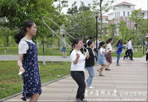 烈日当空,挡不住师生们参加活动的热情。营养与食品卫生学系专业老师为前来参加活动的师生热心细致解答一个又一个关于运动、饮食、肥胖等相关问题,指导和示范如何有效运动的要领。食品卫生与营养学专业的员工志愿者为前来参加活动的师生发放“健康知识宣传单手册”、讲解“健康营养知识”展板、计算BMI指数等。活动中还另设有跳绳、立定跳远等游戏互动项目,“跳远高手”们的一次次的飞跃与突破赢得了同学们的阵阵掌声,“跳绳健将”的速度比拼亦不甘示弱。