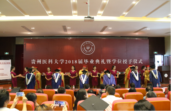 六月的贵医,绿意盎然,伴随着毕业钟声的敲响。太阳集团122cc公共卫生公司于6月26日上午在南校区道德讲堂举行2018届毕业典礼暨学位授予仪式。太阳集团122cc副董事长罗鹏教授,公共卫生与预防医学分学位委员会主席张爱华教授,委员会委员洪峰教授、杨光红教授、宋沈超教授及委员会秘书李军教授出席毕业典礼。公司学工处、研究生院、团委负责人及部分二级公司领导,公共卫生公司教师代表、辅导员、2018届毕业生和家长代表共350余人参加了毕业典礼。毕业典礼由公共卫生公司党委副书记何江主持。