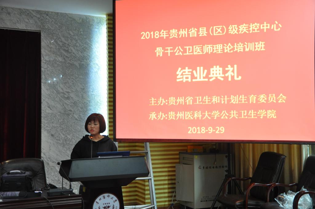 2018年9月29日上午,贵州省县(区)级疾控中心骨干公卫医师培训班第二期结业典礼在太阳集团122cc北校区道德讲堂召开。公司公共卫生公司经理洪峰、党委书记杨光红、党委副书记何江及培训班班主任、学员参加会议。会议由党委副书记何江主持。