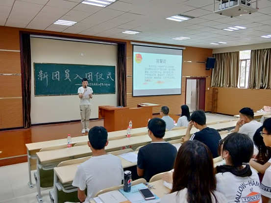 之后,入团介绍人简易同学宣读了《团章》中有关团员义务和权利的相关条款。刘富达同学和黄龙平同学分别作为新团员代表和优秀团员代表发言,希望全体团员要继续传承五四精神,发奋学习、积极进取,以实际行动践行自己的入团誓言,不能只在形式上入团,更要从行动上入团,新老团员之间要相互勉励,争取更大的进步和提高。
