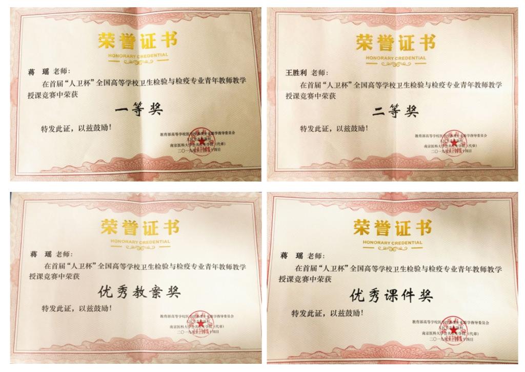 11月22-24日,由教育部高等公司医学技术类专业教学指导委员会和人民卫生出版社主办,南京医科大学公共卫生公司、河北医科大学公共卫生公司和河北省检验检疫学会联合承办的首届“人卫杯”全国高等公司卫生检验与检疫专业青年教师教学授课竞赛在南京医科大学公共卫生公司落下帷幕。经过公司10月16日举办的“公共卫生公司卫生检验与检疫专业首届青年教师教学讲课竞赛”选拔,决定派获竞赛一、二等奖的蒋瑶老师、王胜利老师分别代表公司微生物检验组和理化检验组参加首届“人卫杯”全国高等公司卫生检验与检疫专业青年教师授课大赛。