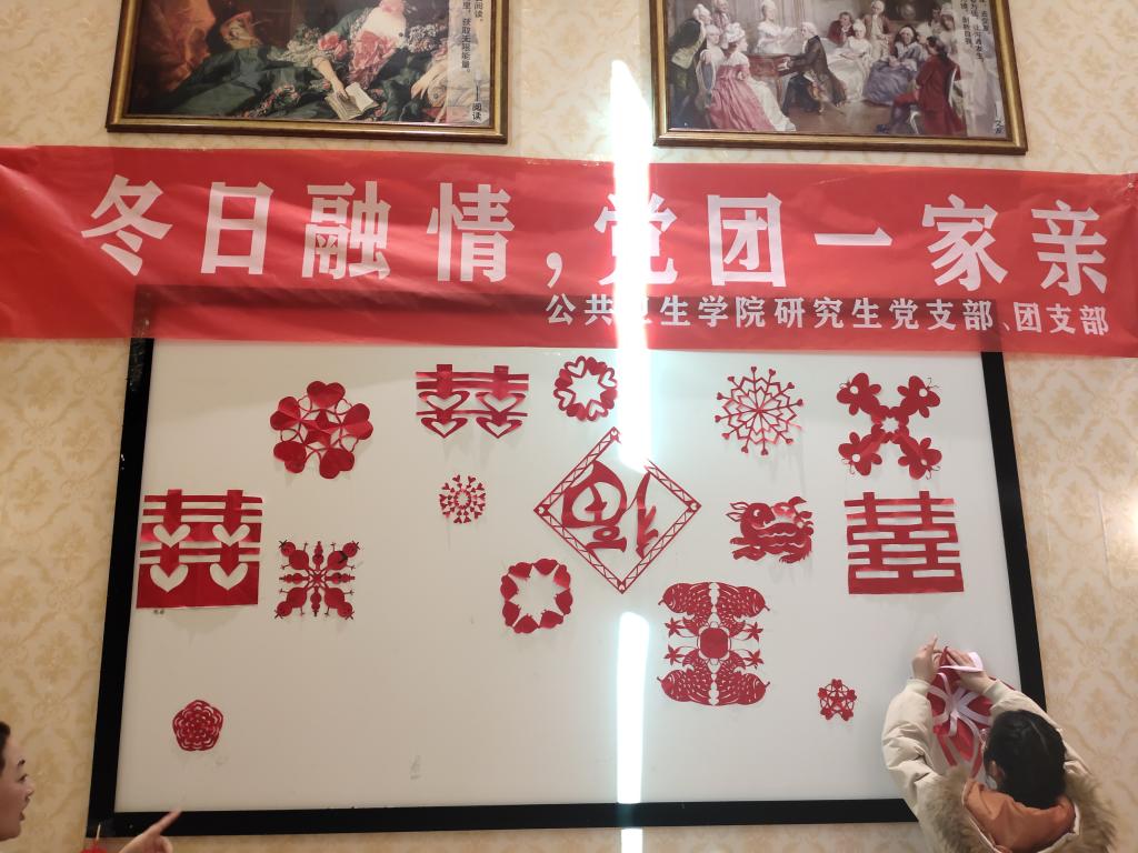 为了对研究生党员、团员进行中国传统文化的教育,公共卫生公司研究生党支部、团支部于12月8日组织开展了一次党建带团建活动,活动的主题为“冬日融情,党团一家亲”。此次活动以传唱革命歌曲、剪纸等多种方式增加同学们对中华文化的了解和传承,增进党团之间的交流与联系,同时也收到了良好的效果。