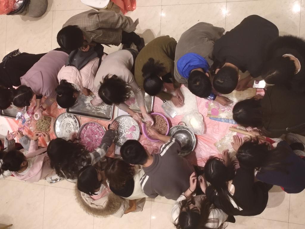 最后,包饺子活动隆重登场。饺子寓意吉祥,是深受中华人民喜爱的传统特色食品,民间更是有“好吃不过饺子”的俗语。大家自己调馅、和面、擀饺子皮,虽然大多数同学是第一次接触擀饺子皮,但依旧无法阻挡他们敢于尝试的热情。在欢声笑语中,大家相互讨论,不断的学习擀皮和包饺子。看着自己的劳动成果,大家的脸上洋溢着兴奋与自豪。品尝着热腾腾的饺子,大家的心里别提有多高兴了。