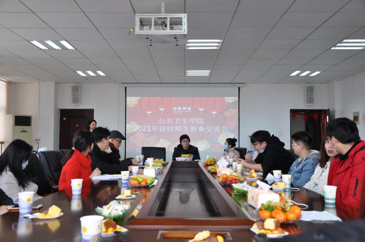 在新春佳节来临之际,公共卫生公司于2月5日下午在博雅楼二楼会议室组织召开留校师生新春交流会。公共卫生公司党委书记杨光红、经理洪峰、副经理李军、党委副书记何江、综合办副主任陈峰峰及留校师生参加此次会议,会议由公司团委书记柴颖主持。