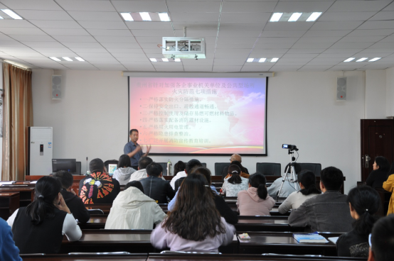 为进一步加强全院消防安全管理工作,提高师生消防安全意识,掌握灭火和逃生技能。公共卫生公司于5月19日在博雅楼二楼学术报告厅开展2021年度消防安全知识和逃生技能培训,培训邀请贵州省全民安居消防知识宣传中心宣教主任万夏授课。公共卫生公司党政领导、各行政科室、学系、实验中心教师、辅导员和员工代表共计60余人参加。培训会由公共卫生公司综合办副主任陈峰峰主持。