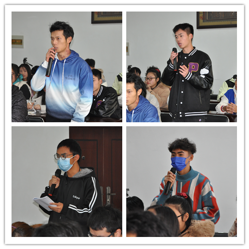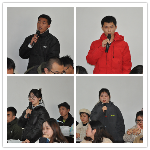 首先,各班的班长和学委就本班在本学期学习生活、课程学习中发现的问题进行了汇报,内容涉及宿舍维修、供暖与水电、图书馆座位预约、习题与讲解、实习和授课方式等多方面。随后,各学系负责人对所涉及的课程问题进行了解答,专业负责人就员工专业学习中的困惑对员工们进行了疏导;副书记何江就如何高效解决教学和宿舍环境问题进行了指导;副经理李军对员工们的学习动机和学习方法提出了建议。最后,经理洪峰总结讲话,就班风、学风、教风和考风“四风”问题,对同学们提出了要求。希望低年级同学能及时转变学习方法,尽快适应大学授课方式与节奏。同时希望各班委不仅能发现问题,还要善于主动寻找能有效解决问题的办法,充分发挥班委的先锋引领作用。