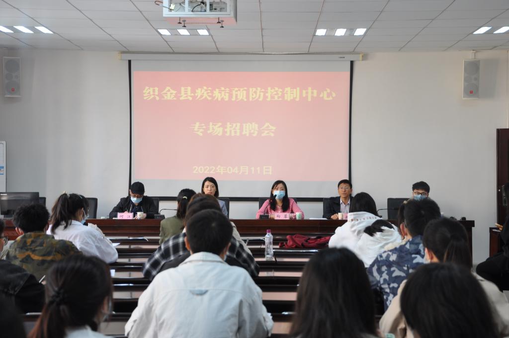 2022年4月11日,织金县疾病预防控制中心在公司召开“春暖花开,岗为你来”专场招聘会。织金县疾病预防控制中心副主任向蓉、党支部副书记赵训、办公室张以勋、公司党委书记郑维薇、副书记何江出席,2022届毕业班辅导员、相关专业毕业生参加。