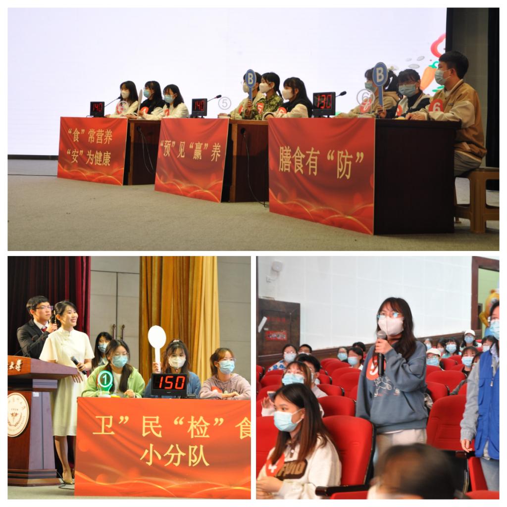 本次知识竞赛内容包含《中国居民膳食指南(2022)》、《中国儿童青少年营养与健康指导指南(2022)》、《预包装食品营养标签通则》、《餐饮食品营养标识指南》;合理膳食对于增强免疫、防控疾病的重要意义;“三减”(减油、减盐、减糖)、“三健”(健康口腔、健康体重、健康骨骼)、节约粮食、分餐制和使用公勺公筷饮食等认识。比赛分为小“食”牛刀(必答题)、“食”不我待(抢答题)、观众互动环节、非常“食”刻(风险题)和与“食”俱进(附加赛)5部分。最终按照得分高低评出一二三等奖及优秀奖。