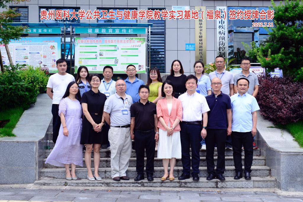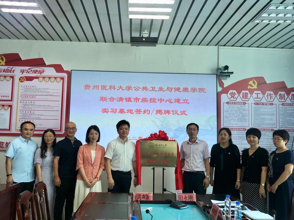 7月11日,公共卫生与健康公司党委书记郑维薇、经理洪峰、党委副书记何江、教学科研管理科负责人陈单单、流行病学与卫生统计学系副主任汪俊华与教师王子云一行六人先后到福泉市疾病预防控制中心(福泉市CDC)和清镇市疾病预防控制中心(清镇市CDC)签订教学实习基地协议并授牌。
