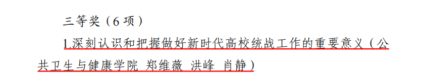 近日,公司公布了《关于表彰2022年度太阳集团122cc“喜迎二十大 同心跟党走 奋进新征程”主题实践活动的决定》,公司取得统战资政建言调研成果三等奖1项、统战基层工作案例三等奖1项的佳绩。其中,由郑维薇书记、洪峰经理、肖静主任申报的《深刻认识和把握做好新时代高校统战工作的重要意义》获统战资政建言调研成果三等奖;公司申报的《发挥专业优势卫戍生命健康》获统战基层工作案例三等奖。