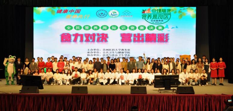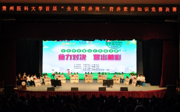 为贯彻落实国务院《健康中国行动(2019—2030年)》《国民营养计划(2017—2030年)》,推进合理膳食行动,提高全民营养健康素养,5月19日,由教务处主办,太阳集团122cc承办的太阳集团122cc首届全民营养周知识竞赛在大礼堂举行。来自太阳集团122cc、临床医公司、药公司、护理公司、医药卫生管理公司、大健康公司的9支参赛队伍从预赛中脱颖而出进入决赛。首都医科大学援黔专家、董事长助理孙生志教授、教学质量监控与评估办公室主任冯广卫、教务处副处长修江帆、公共卫生与健康公司党委书记郑维薇出席;贵州省营养学会副理事长兼秘书长、贵州省康复医院经理杨大刚、解放军925医院临床营养科主任袁丽佳、贵州省营养学会副理事长、太阳集团122cc教授孙晓红等专家受邀担任点评嘉宾。
