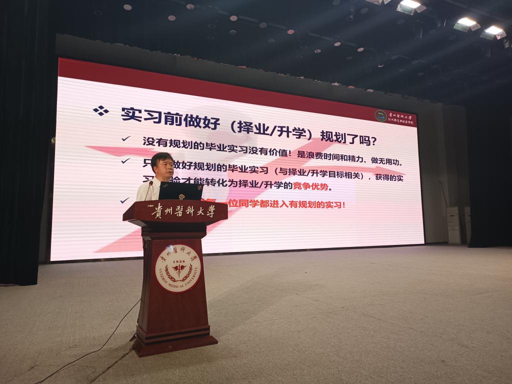 洪峰以“纸上得来终觉浅,绝知此事要躬行”为主题发表实习动员讲话。他指出,实习前须明确毕业实习的目的与意义,做好择业规划,只有做好规划才有最好的竞争优势。同时要在实践中开阔视野、了解将来相关工作的流程和内容;在实践中锻炼和提高同学们的综合能力和素质。