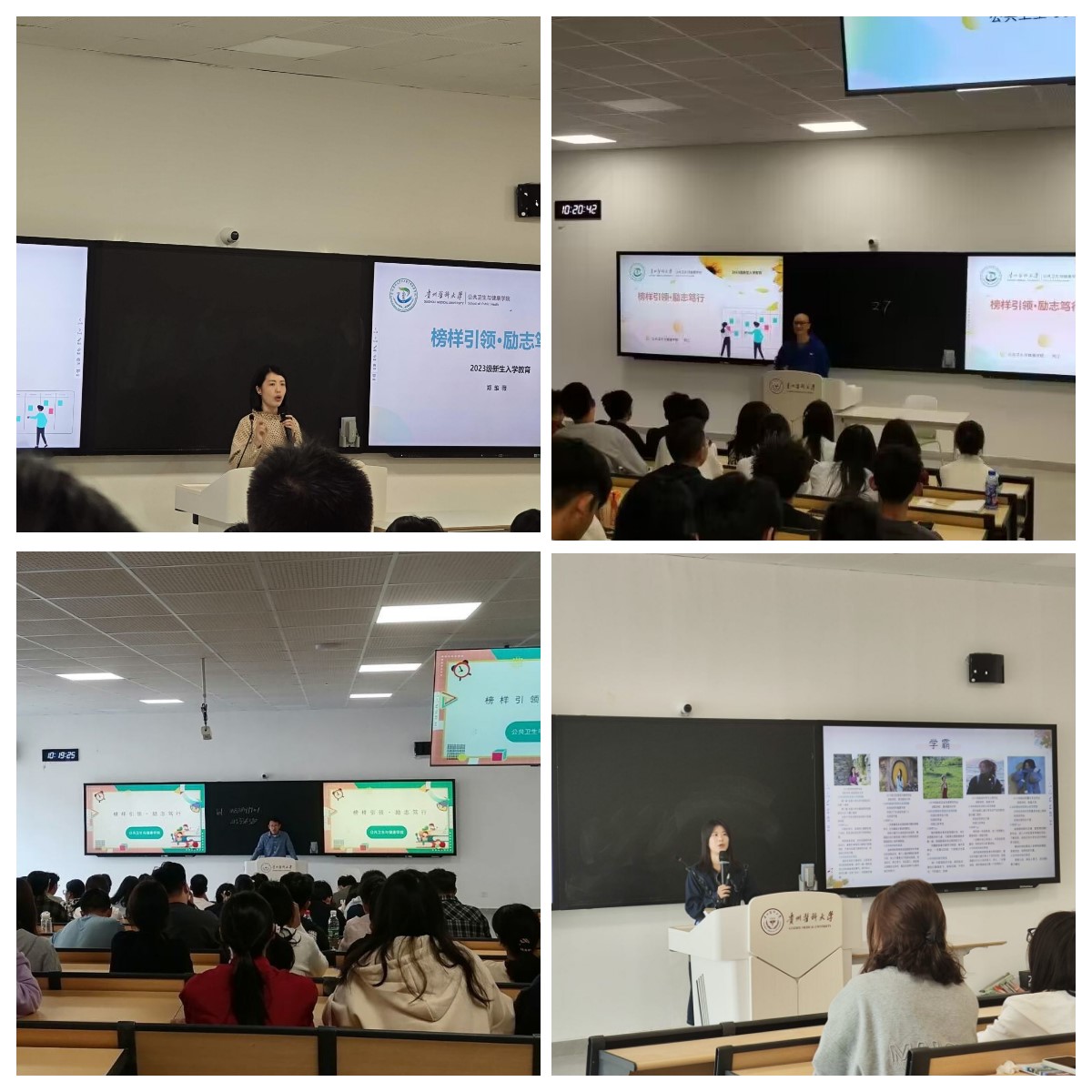 公司党委书记郑维薇、副书记何江、员工科副科长原琦、辅导员郝雪君以“榜样引领、励志笃行”为题,为新生阐述树立优良学风对老员工成长成才的重要意义,结合时代楷模黄文秀、全国最美教师刘秀祥,以及公卫青年榜样的励志故事和成长经历,勉励同学们要增强自律意识,树立优良学风,端正学习态度、明确目标方向、科学规划未来、脚踏实地学习、全面发展提升、持之以恒奋斗,立志做有理想、敢担当、能吃苦、肯奋斗的新时代好青年。