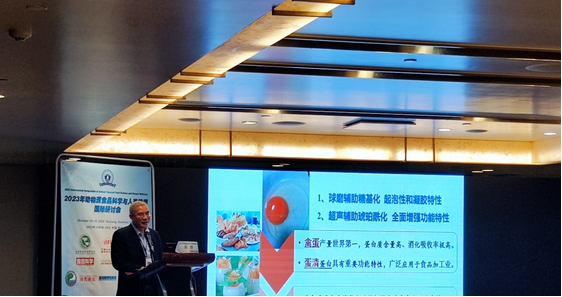 在研讨会上,黄群教授分享了关于“禽蛋蛋白质加工特性提升研究”的报告。他通过研究蛋清粉,探究了球磨辅助糖基化修饰对起泡和凝胶特性的改善效果。