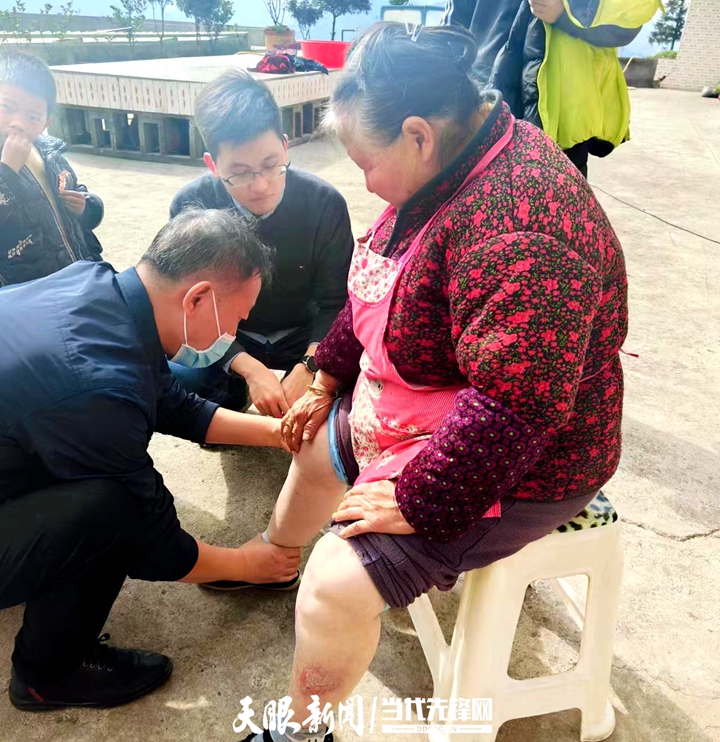 “我现在脚掌、磕膝头好多了,三个月一直坚持吃药,现在不用再吃止痛药了。今天是村干部赵才品通知我来的,医生们一会儿拍CT,一会儿抽血检查……就像自己的儿女照顾我一样。”阳长镇海子村四组79岁的村民彭建秀说。