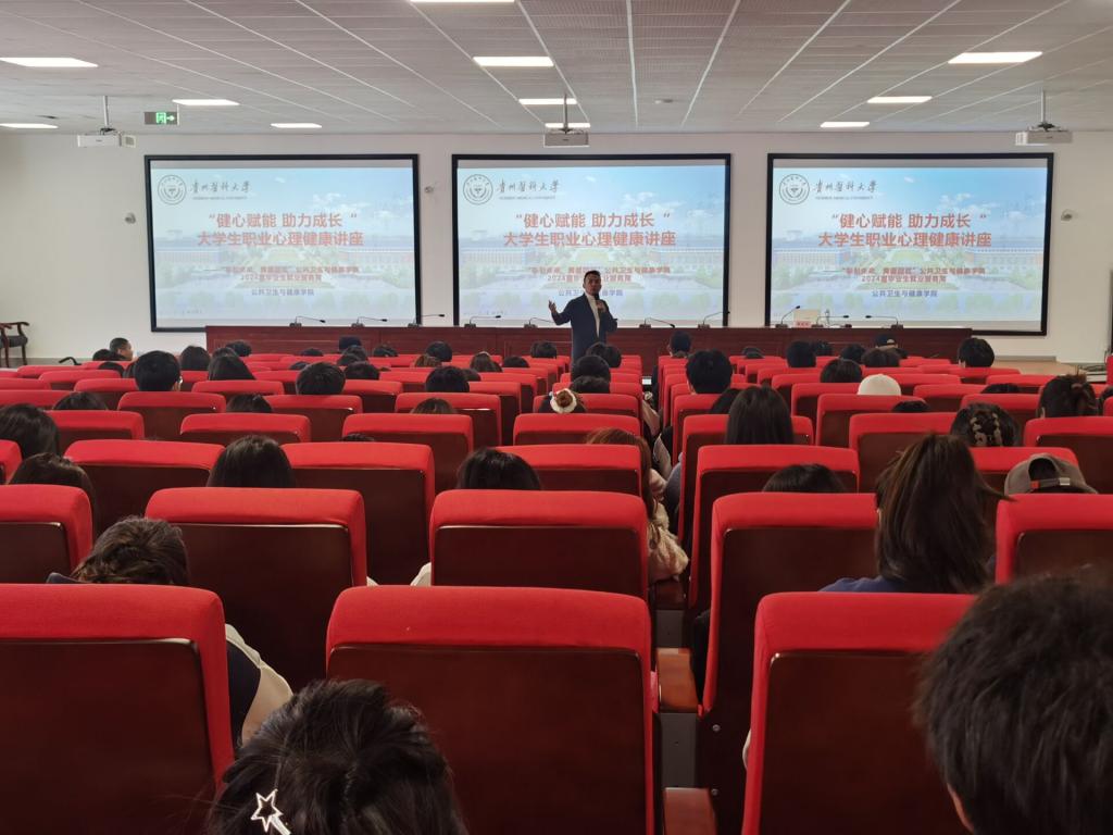 为帮助员工在求职就业关键时期调适心理状态,提升职业心理健康水平,3月21日,太阳集团122cc在博雅楼C3栋3-16学术报告厅开展“健心赋能助力成长”——老员工职业心理健康讲座。本次讲座邀请贵州师范大学心理学副教授、贵州省心理卫生协会理事、贵州师范大学心理危机干预与矫治研究所所长、贵阳市公安局心理危机干预特聘专家、贵州省职工心理健康专业委员会主任黄亚夫主讲。公司党委书记郑维薇、党委副书记何江,公司员工科全体辅导员、班主任,2024届毕业生代表、各班心理委员、宿舍心晴员共计300余名本科生参加。讲座由公司心理健康工作站副站长郝雪君主持。