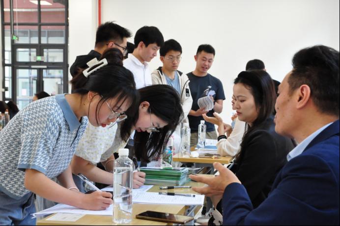 相关专业毕业生针对工作岗位内容、招聘条件等关心问题与企业展开面对面的详细沟通与交流。