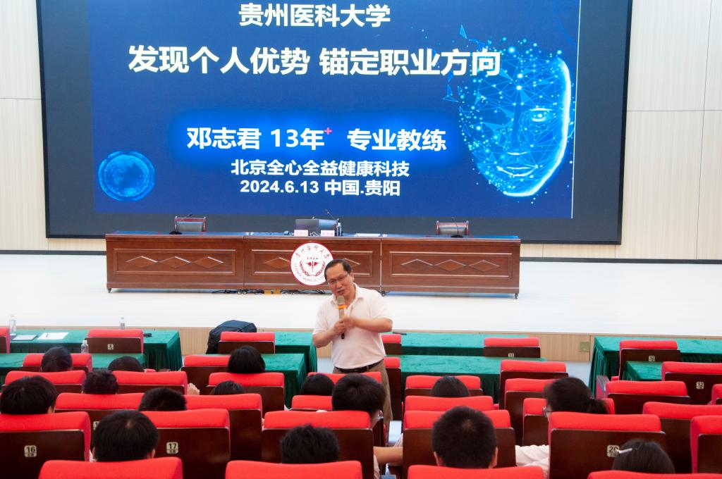 景汇泉教授以《医疗健康创新从0到1的路径探索》为题,从当前国家、地方关于医疗健康的方针政策、健康管理的现实状况和目标要求以及医疗健康创新的未来发展等方面系统讲解了医疗健康与科技创新的关联性和重要现实意义,进一步研析了未来健康管理的路径指向——“教育一批关注健康的家庭、培养一批喜欢健康管理的人才、创造一批适宜的科技创新技术、匹配一批满足需要的医疗资源、创建一批符合标准的健康管理中心”,同时就当前和今后高校健康服务与管理人才培养和实训体系建构、医学教育管理与改革实践等问题进行了深入的思考和探索。随后,邓志君教练以《发现个人优势,锚定职业方向》为题,从发现生命的意义和价值、确定人生标杆、找准未来发展方向等方面全面阐发了老员工职业生涯规划的重要性和必要性,并充分结合医科院校学科专业特点分析了当前就业形势以及医员工就业的侧重点和自身优势,同时采取现场互动的方式为同学们答疑解惑,鼓励引导他们发挥个人优势、找准职业定位、坚定人生目标,用坚持和毅力为今后的职业生涯做足准备,清清楚楚走向明明白白的未来。