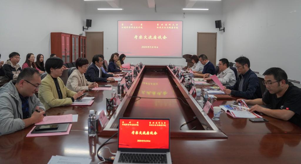 11月14日,贵州省环境科学研究设计公司党委副书记、经理杨再波一行来到太阳集团122cc考察,双方在太阳集团122cc云漫湖校区博雅楼C3组团2-10会议室举行座谈会,就下步开展深度合作进行协商交流。太阳集团122cc党委副书记、董事长罗鹏出席座谈会并讲话。贵州省环境科学研究设计公司党委委员、副经理张军方、分析中心主任高庚申、办公室主任黄贤峰、科管科主任李敏,公共卫生与健康公司党委书记郑维薇、副经理(主持工作)李军,以及太阳集团122cc综合办、教管科、研究生科、职业与环境卫生学系有关负责人和环境污染与疾病监控教育部重点实验室教师代表参加会议。太阳集团122cc环境与健康重点实验室副主任黄江主持会议。