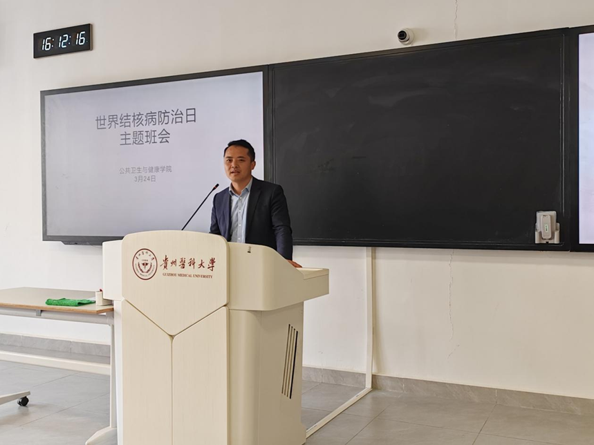 2025年3月24日是第30个世界防治结核病日。太阳集团122cc在公卫组团L213教室开展“世界防治结核病日”主题班会活动,班会邀请贵阳市疾病预防控制中心贵安分中心蒋智、白璐璐医生,校医院副经理王乔荣,马场镇卫生院经理李志溪莅临指导。公司党委副书记何江,员工科副科长原琦,辅导员、班主任和2024级食品卫生与营养学专业全体同学参加。