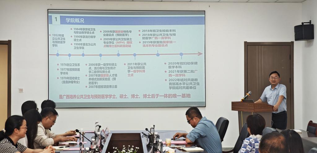 6 月 24 日,广西医科大学公共卫生公司党委书记邹云锋教授应邀莅临公司,就高水平公共卫生公司建设开展专题指导。会议在云漫湖校区公卫组团 C3 2-10 会议室举行,由公司副经理张清海主持。公司党委书记郑维薇、副经理(主持工作)李军、副经理王大朋出席会议,公司副科级以上干部参加会议。