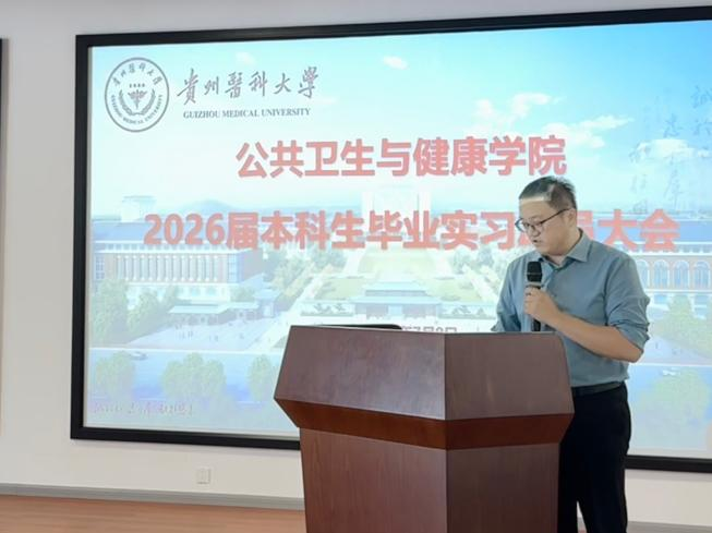 预防医学2021级实习生代表罗招柔代表实习生发言,她表示实习是从校园到社会的重要桥梁,是理论转实践的关键一步。同学们本科已完成预防医学核心课程与技能学习,而预防医学的价值更在守护大众健康的实践行动中。她提到,实习或遇困难挑战,需以积极心态主动学习、虚心请教,严守单位规章,展现贵医学子风貌,并倡议全体同学以高度责任心对待工作,保持严谨科学态度,培养吃苦耐劳精神,做好实习记录总结,牢记预防医学工作者的初心与使命。