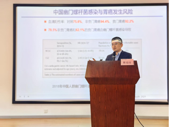 讲座中,靳光付教授将其深厚的理论造诣与前沿的科研实践相结合,系统阐述了胃癌发生的分子机制,并重点剖析了胃癌预防的关键节点。他通过翔实的数据与临床案例,深入解读了遗传性胃癌的筛查策略,同时强调了健康生活方式对降低全肿瘤发病风险的循证依据。