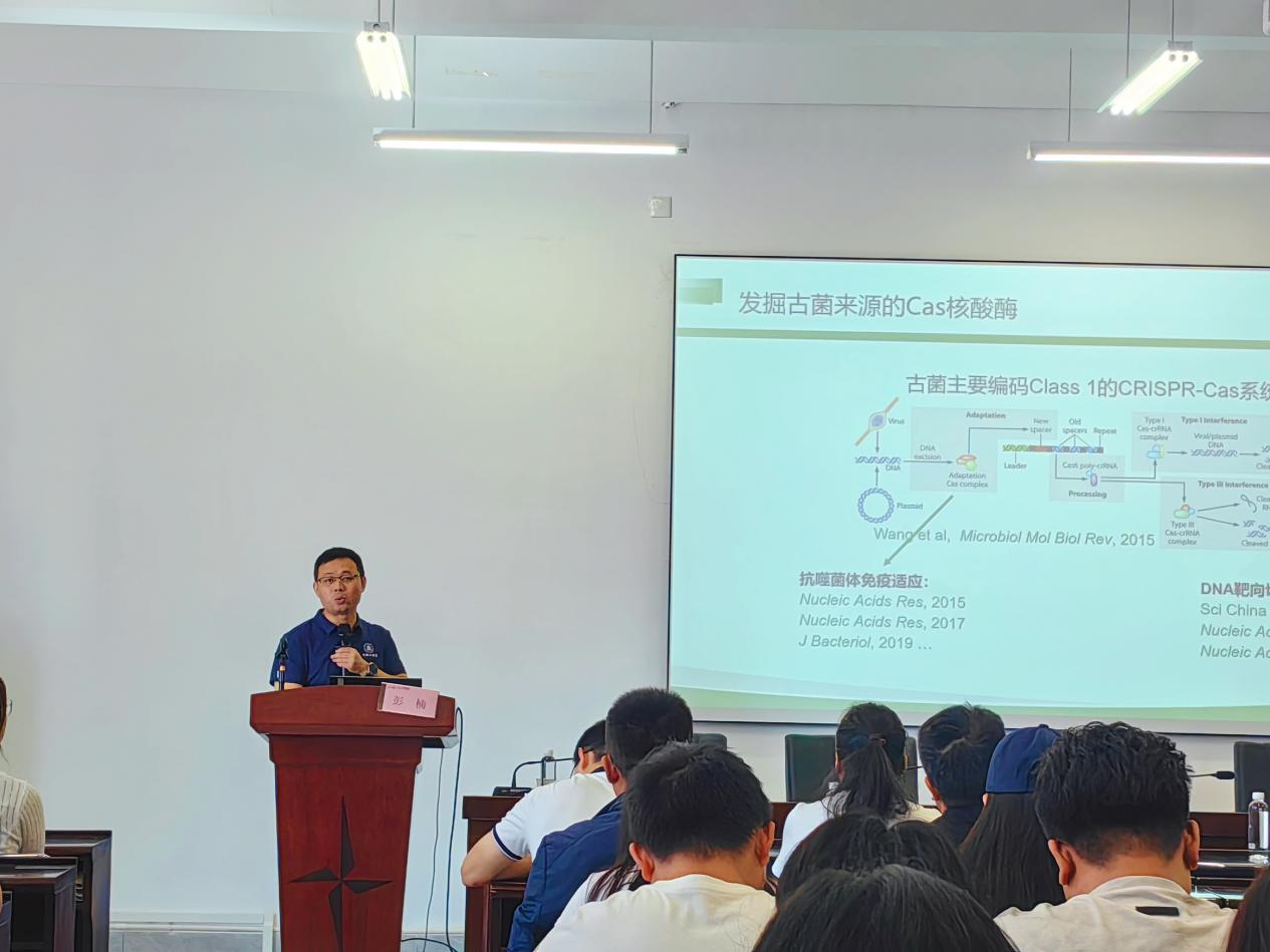 讲座中,彭楠教授结合其深厚的理论造诣与前沿的科研实践,系统介绍了新型微生物基因编辑工具的最新研究进展及其在多个领域的应用。重点分享了在“新型微生物基因编辑工具”方面的研究突破,详细阐述了该工具的开发路径、技术优势及其应用案例。