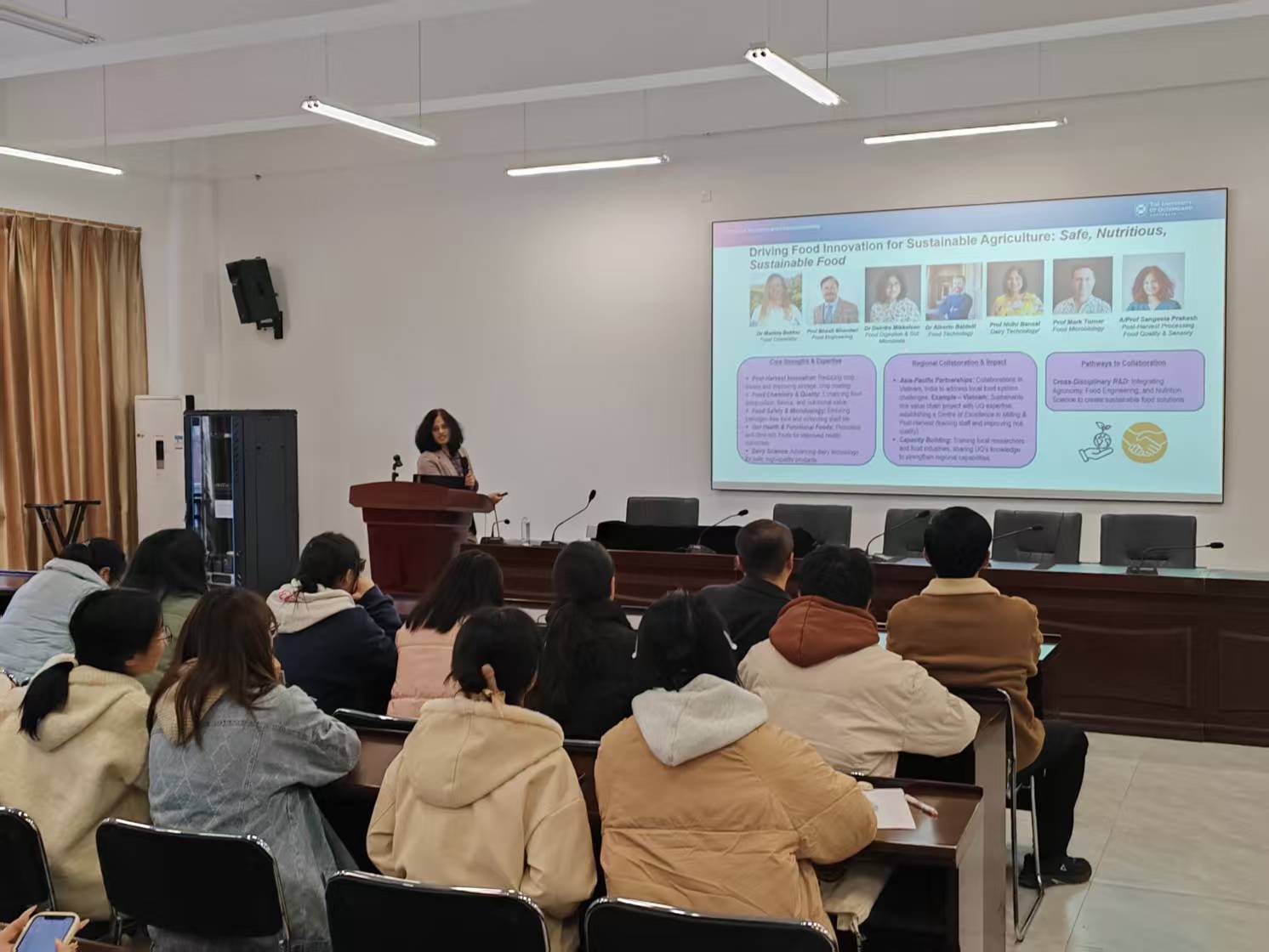 会后,双方进行了学术交流。食品卫生与营养学专业(中高计划)的员工聆听了Sangeeta Prakash教授所作的“Food texture modification and dietary design for people with swallowing difficulties”学术讲座并进行了热烈讨论。