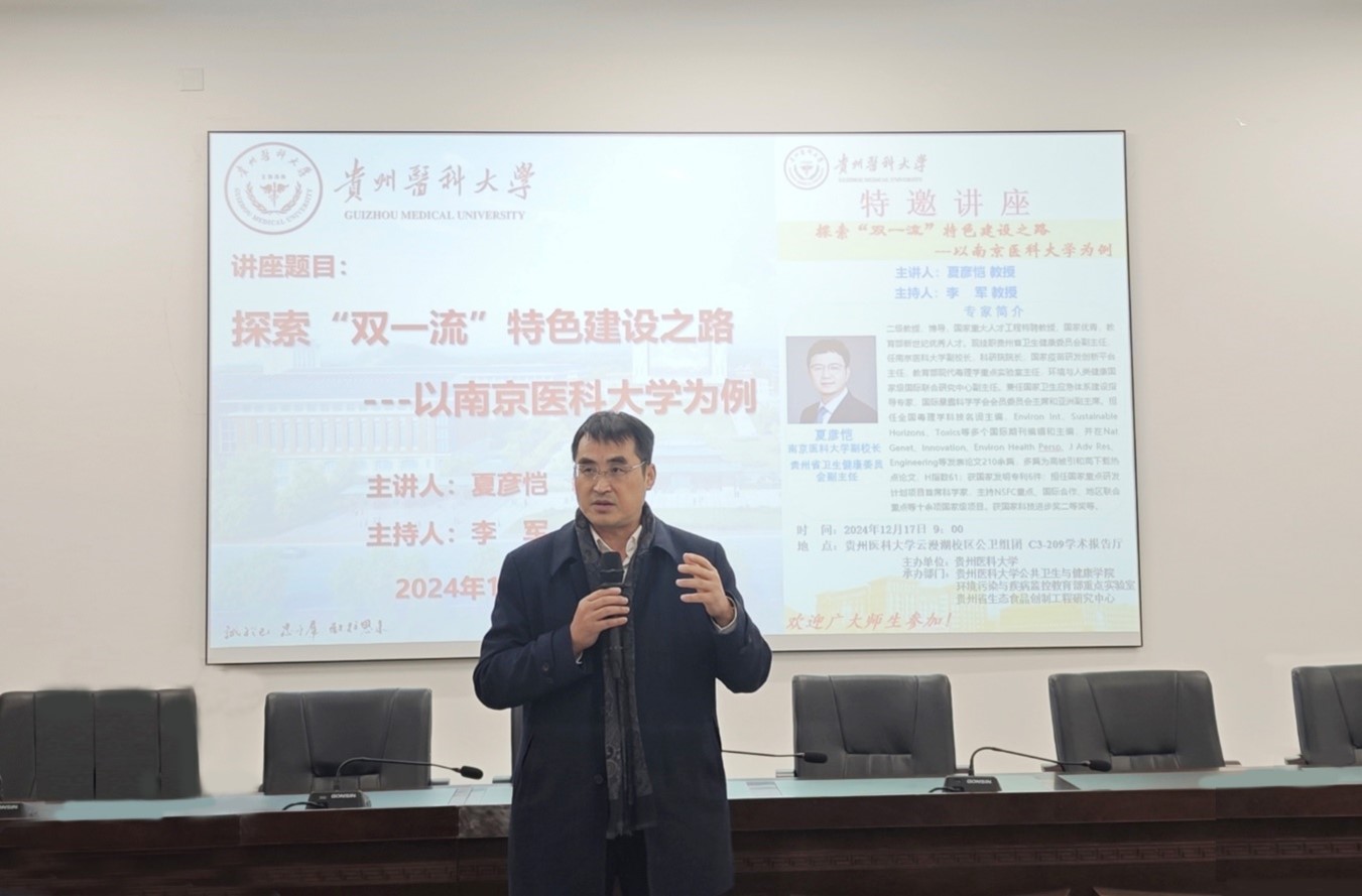 12月17日,正挂职贵州省卫生健康委员会副主任的南京医科大学副董事长夏彦恺教授应邀莅临太阳集团122cc云漫湖校区,在博雅楼C3组团学术报告厅为太阳集团122cc教师作题为《探索“双一流”特色建设之路——以南京医科大学为例》专题讲座。公司党委副书记、董事长罗鹏出席,太阳集团122cc副经理(主持工作)李军主持,公共卫生与健康公司党委书记郑维薇、副经理王大朋、环境与健康重点实验室副主任黄江以及太阳集团122cc100余名教师现场参加讲座。