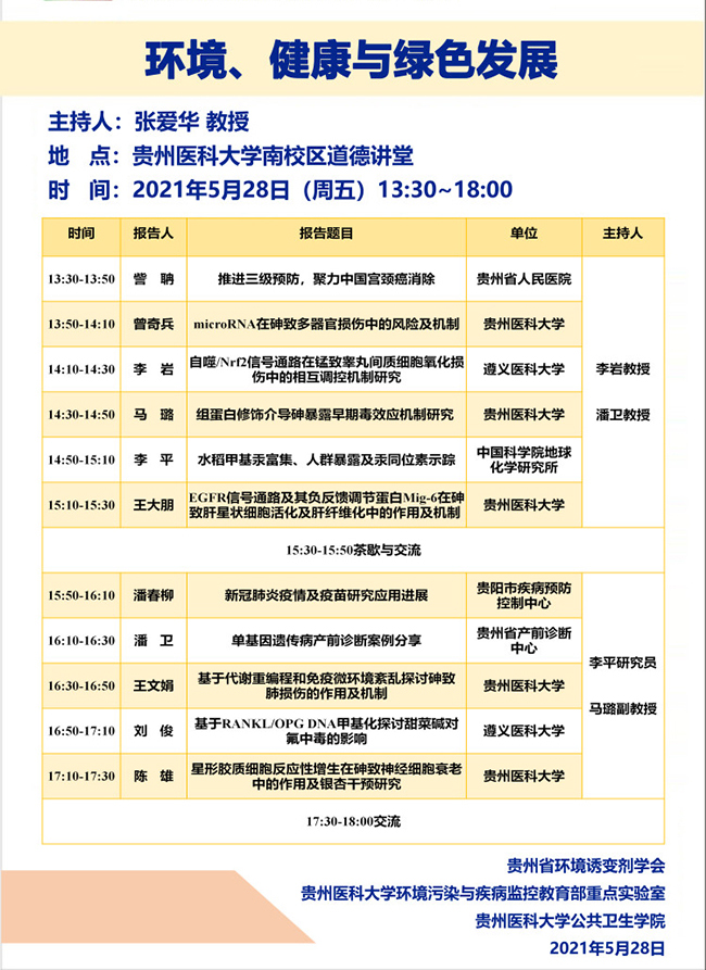 环境、绿色与健康发展 - 贵州省环境诱变剂学会2021年学术论坛