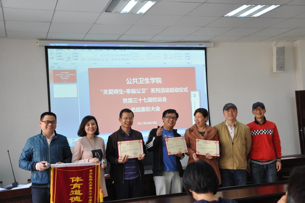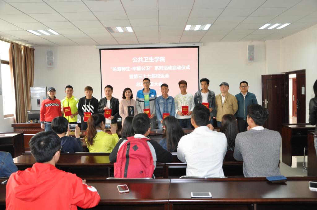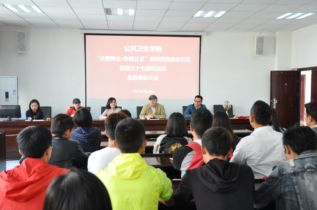 为营造温馨和谐的学习、工作氛围,打造团结奋进的团队,公共卫生公司在2017年度开展“关爱师生•幸福公卫”系列活动。2017年4月18日中午,公共卫生公司在博雅楼二楼学术报告厅举行了“关爱师生•幸福公卫”系列活动启动仪式暨第三十七届校运会总结表彰大会。公共卫生公司党委书记杨光红、经理洪峰、党委副书记何江、办公室主任张强、员工管理科科长刘亮、分团委负责人柴颖及参加校运会师生运动员、教练员40余人参加了启动仪式。仪式由柴颖主持。