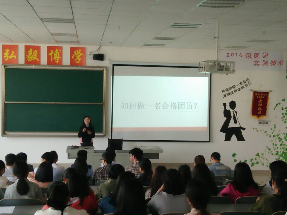 为深入学习贯彻习近平总书记系列重要讲话精神,深入推进共青团改革,大力推进从严治团,切实增强团员先进性和使命感,根据团中央和各级团委关于开展“学习总书记讲话,做合格共青团员”教育实践的有关要求,5月8日下午,公共卫生公司分团委负责人柴颖老师与2015级食品卫生与营养学团支部的团员青年一起,开展“如何做一名合格团员”主题团课活动。