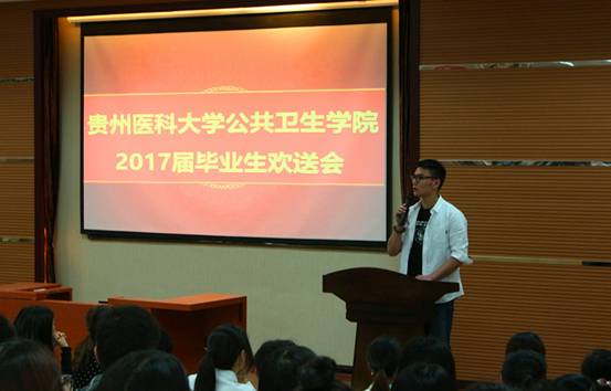 2017年6月27日下午,一场以“青春未歇·梦想不散”为主题的“公共卫生公司2017届毕业生欢送会”在博雅楼6101教室举行。公共卫生公司党委书记杨光红、党委副书记何江、公共卫生公司各教研室、实验室、行政科室负责人及教师代表,公共卫生公司2017届全体毕业生和低年级员工代表参加了此次毕业生欢送会,会议由公共卫生公司分团委负责人柴颖老师主持。