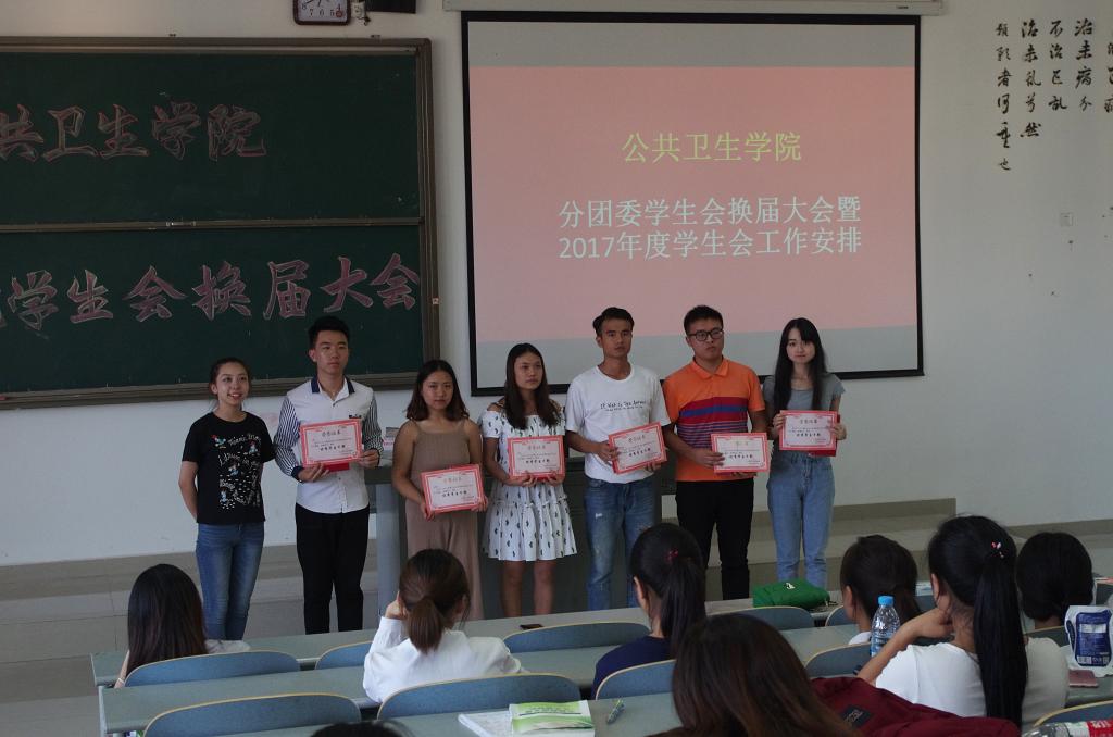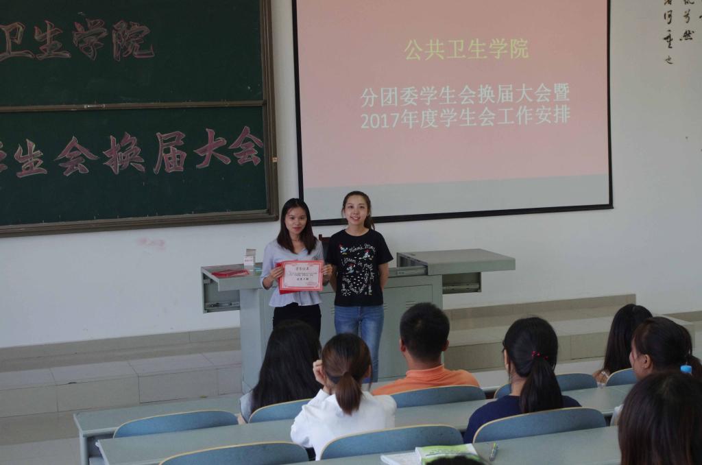 为保证新学年公共卫生公司分团委员工会工作的顺利开展和新老员工干部交接, 公共卫生公司分团委员工会于2017年9月1日下午5:30在4505教室组织举行换届大会,公共卫生公司分团委负责人柴颖老师及分团委员工会全体成员参加了本次换届大会。换届大会由上一届员工会主席吕博主持。