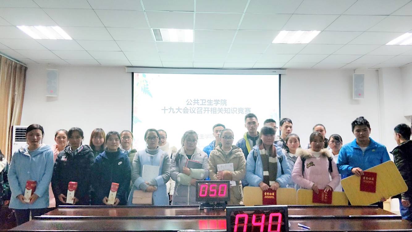 知识竞赛围绕党的十九大报告中提出的新观点、热词、高频词及其与老员工密切相关的重要论断内容,以必答题、抢答题两个环节进行,经过三轮激烈的角逐,最终2017级预防医学专业(甲班)团支部参赛队获得第一名,2016级预防医学专业团支部参赛队获得第二名,2015级卫生检验与检疫专业团支部参赛队获得第三名。