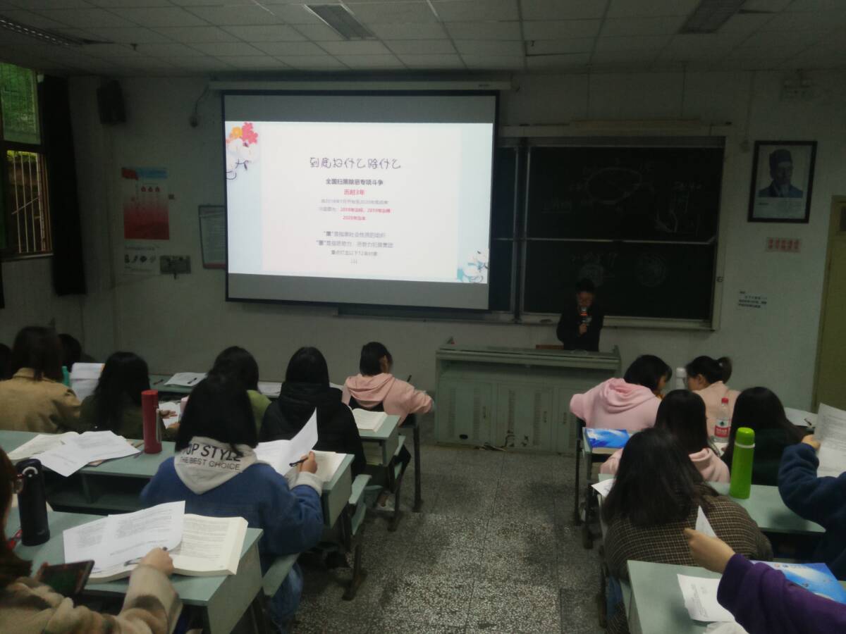 接下来由各班班委对教育系统扫黑除恶专项斗争中的重点打击对象进行讲解,并提醒同学们增强法律意识,学会运用法律知识保护自己,谨慎交友稳妥处事,坚决抵制非法贷款。