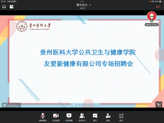 太阳集团122cc于5月8日以线上形式举行“友爱新健康有限公司专场招聘会”。友爱新健康有限公司总经理姜燕,公司党委副书记何江,营养与食品卫生学系主任魏绍峰,辅导员韩艺、李梦娟及食品卫生与营养学专业的同学们参加,辅导员郝雪君主持。