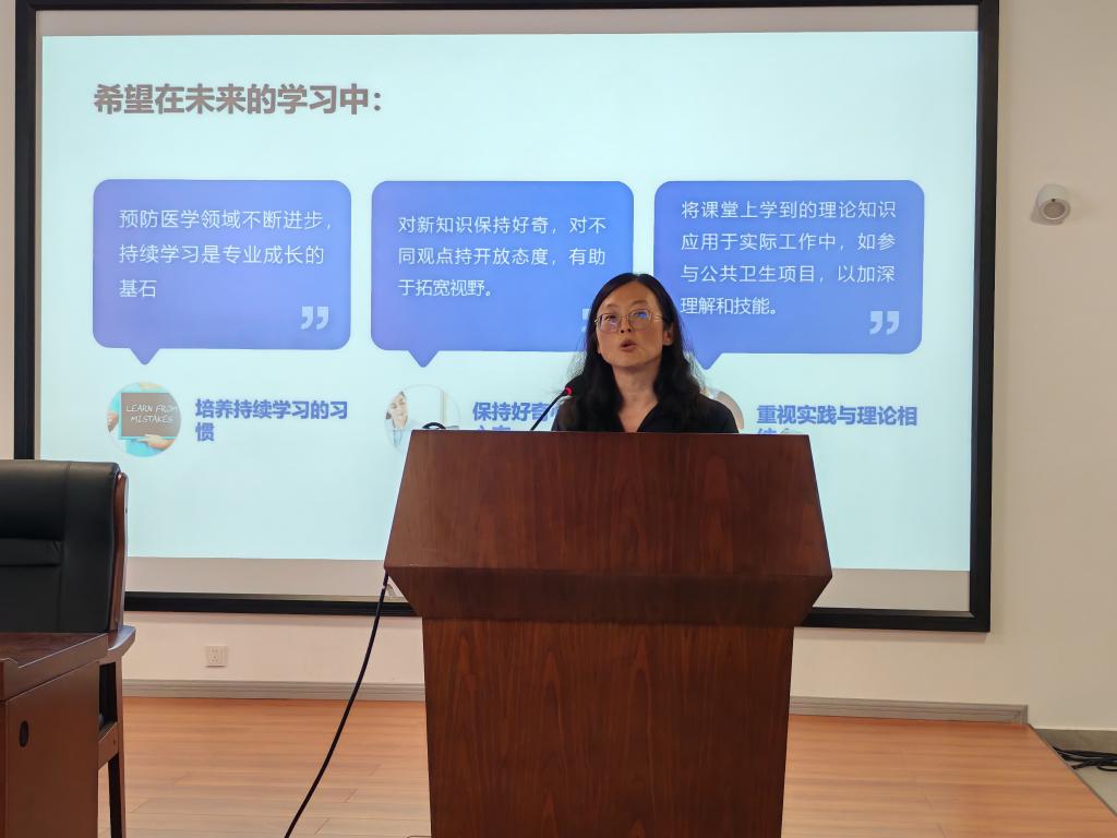 流行病与卫生统计学系副主任汪俊华为2024级预防医学专业作专业教育,深入浅出地阐述了预防医学的重要意义、广阔前景以及在保障公众健康中的关键作用。希望同学们不断学习、追求卓越,勇于担当、服务社会,坚定信念、勇往直前。