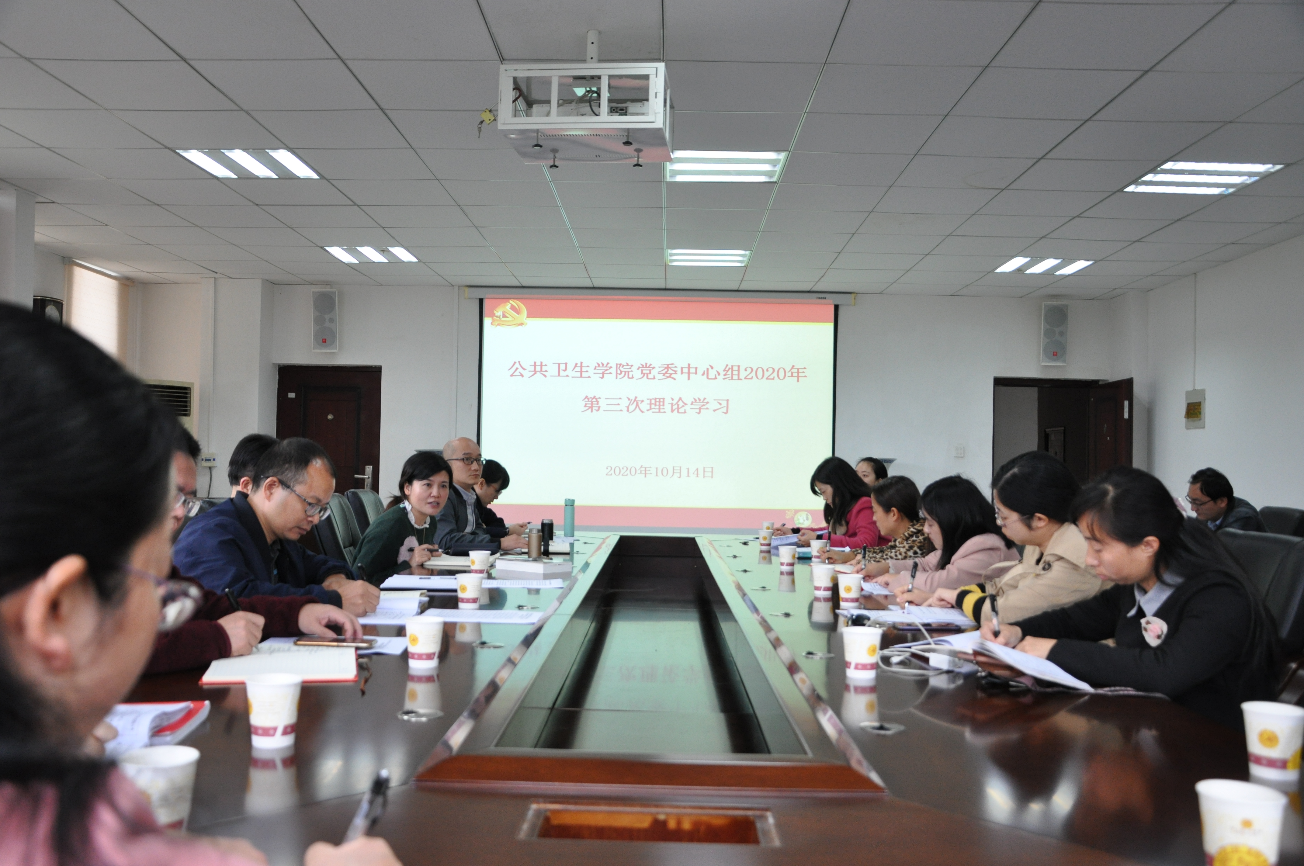 10月14日,公共卫生公司在博雅楼二楼会议室举行2020年第三次党委中心组集中学习。公司党委书记杨光红主持学习,公司党政领导班子、各行政科室负责人、各学系负责人、公司各党支部委员参加。