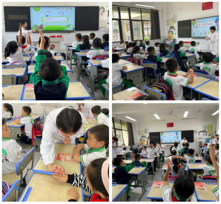 首先,志愿者们走进小学课堂,开展主题宣讲,主要从“养成良好的饮食卫生习惯、食物要合理搭配、合理安排一日三餐、食品卫生安全知识”等几个方面引发小朋友积极参与、互动学习,并通过“你说我猜、知识抢答”等游戏环节,“幸运小贴纸、精美小礼品、美味棒棒糖”等奖励机制,拉近了志愿者们与小朋友之间的距离,激发小朋友学习兴趣,小朋友们争先恐后的抢答问题,现场气氛十分活跃、热烈。
